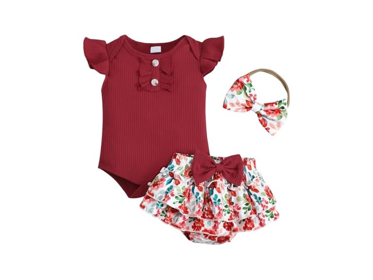 - Package Includes: You will receive a baby girl Ribbed flying sleeve top + floral shorts + bow headband. perfect for hot summer days, Your baby will love wearing it this summer