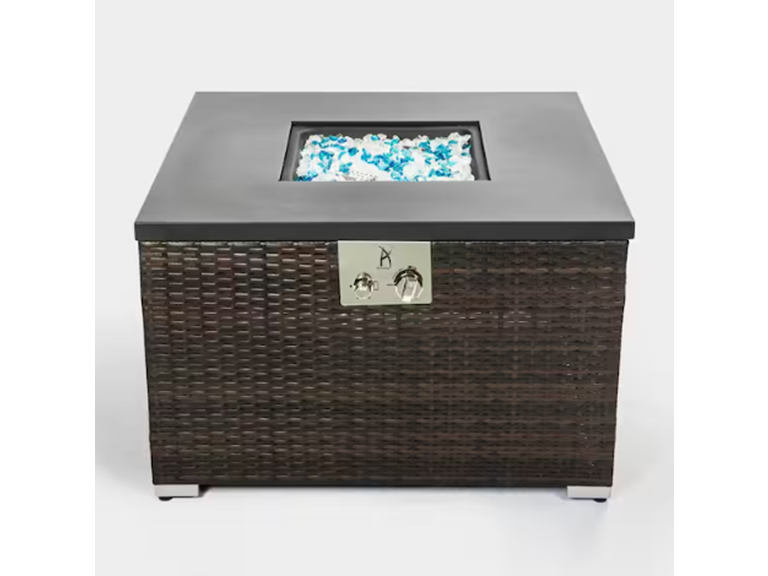 Experience the charm of an outdoor gas fire pit with our stylish Square Dark Brown Wicker Fire Pit Table. Crafted for both elegance and functionality, this propane fire table features glass rocks that create a mesmerizing flame display. Perfect for cozy evenings, it combines the warmth of a fire with the comfort of a dining or lounging surface. Enhance your patio or backyard with a focal point that's as beautiful as it is practical, inviting friends and family to gather around in style. Elevate your outdoor living space with a touch of luxury and warmth that's sure to become the heart of your gatherings.