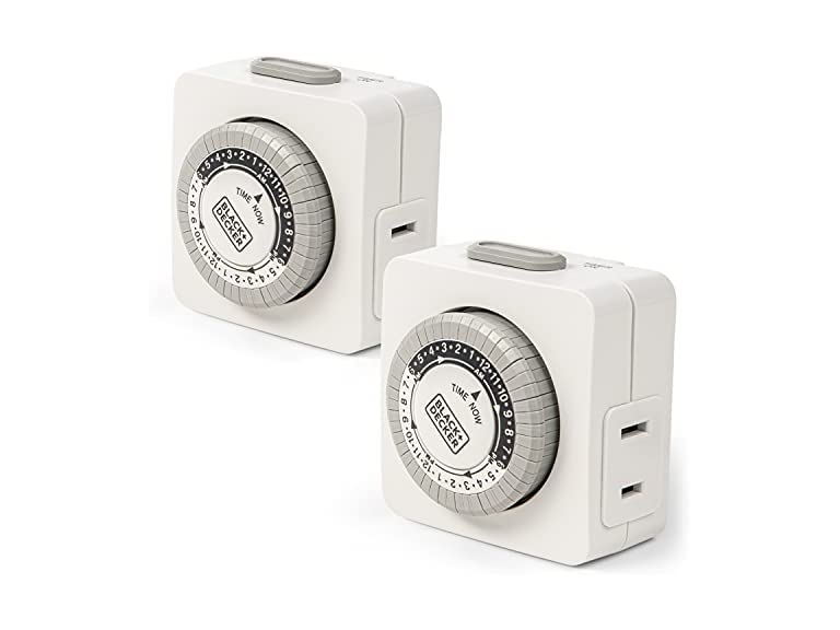 - Control Your Home: Automate your lights, seasonal decor, and appliances with these compact, easy-to-use Indoor Programmable Outlet Timers from Black + Decker! These timers for lights come in packs of 2 so you can program multiple rooms.
