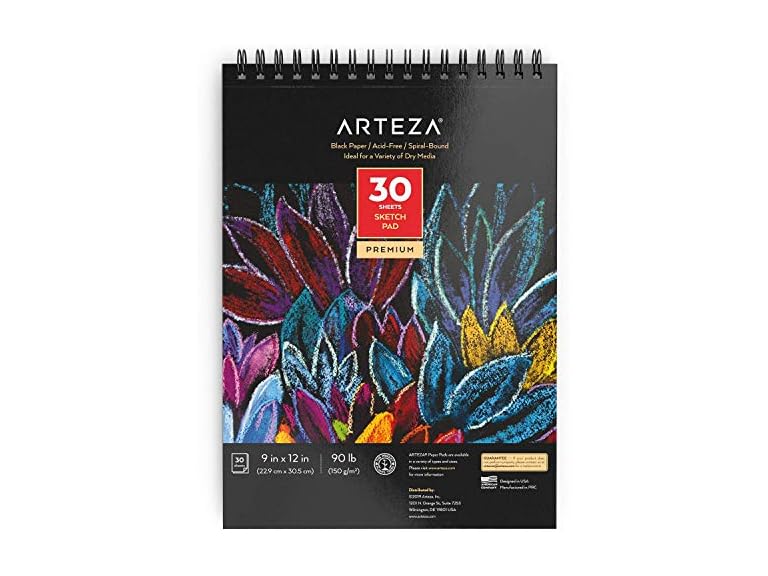 - (1) ARTEZA Spiral Sketch Book 9x12 Black Art Paper Draw