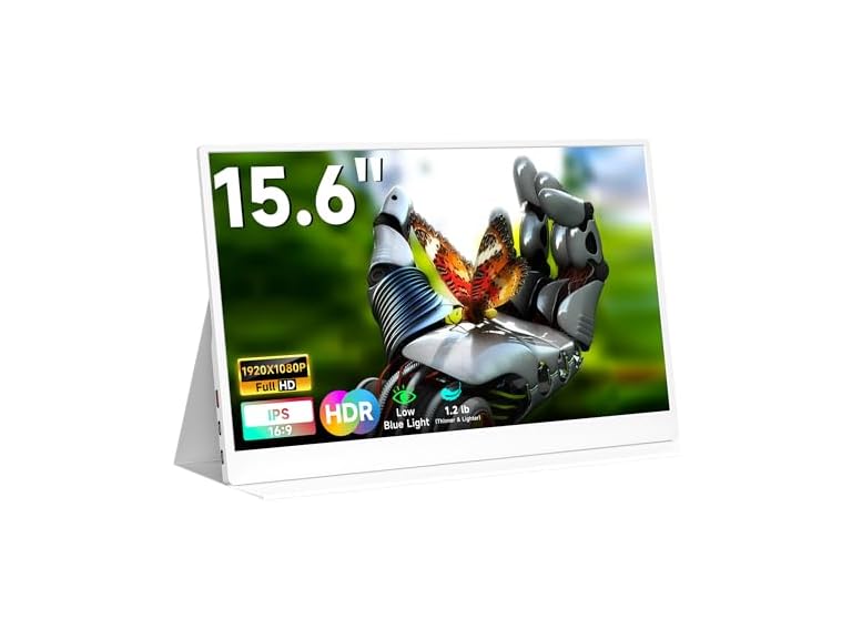 - 【Vibrant FHD 1080P HDR Portable Monitor with Eye Care】Experience stunning visuals on this 15.6" portable monitor for laptop featuring Full HD 1920×1080 resolution and HDR technology. The IPS matte display delivers 170° wide viewing angles, lifelike colors, and enhanced contrasts—perfect as a gaming monitor for PS5/Xbox or a computer monitor for remote work. Low-blue-light and flicker-free technology reduce eye strain during extended use