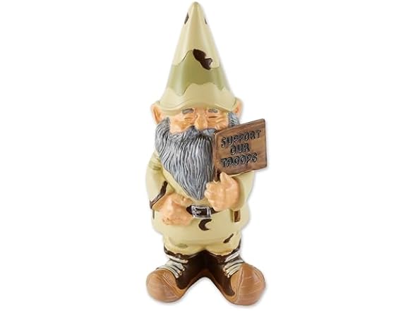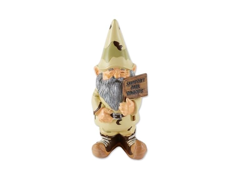 - MEASUREMENTS: This Support Our Troops garden gnome measures 4.75x4x11.25"