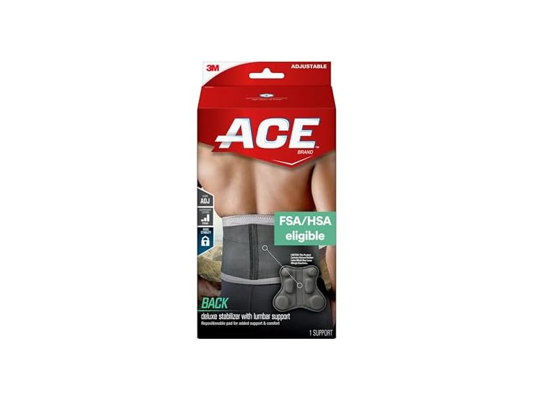 - (1) ACE Deluxe Back Stabilizer, with Lumbar Support, Back Brace, Doctor Developed, Adjustable, Helps with Herniated Discs and Sciatica