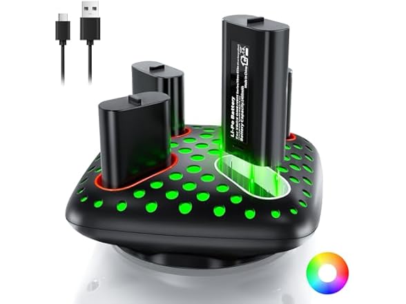 - 🔋[Package Included]: 4 x 5180mWh battery packs; 1 x charger dock with RGB night lights; 1 x 31.5" long usb cable; 1 x user manual. Note: Third-party products are not manufactured by xbox.