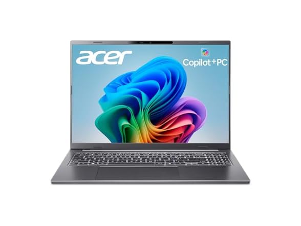 Acer Aspire 16 AI Copilot+ PC | 16" WUXGA 120Hz 100% sRGB Display | Snapdragon X | NPU: 45 Tops - GPU: Up to 1.7 TFLOPs | 16GB LPDDR5X | 512GB PCIe Gen 4 SSD | Wi-Fi 7 | A16-11M-X0LW