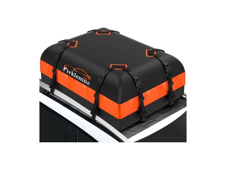 - 【Easy to Install】:FIVKLEMNZ rooftop cargo carrier fits for any car, truck, or SUV. If there is not roof side rails on your car, it can be quickly and easily installed to roof rack in minutes with 6 door hooks.