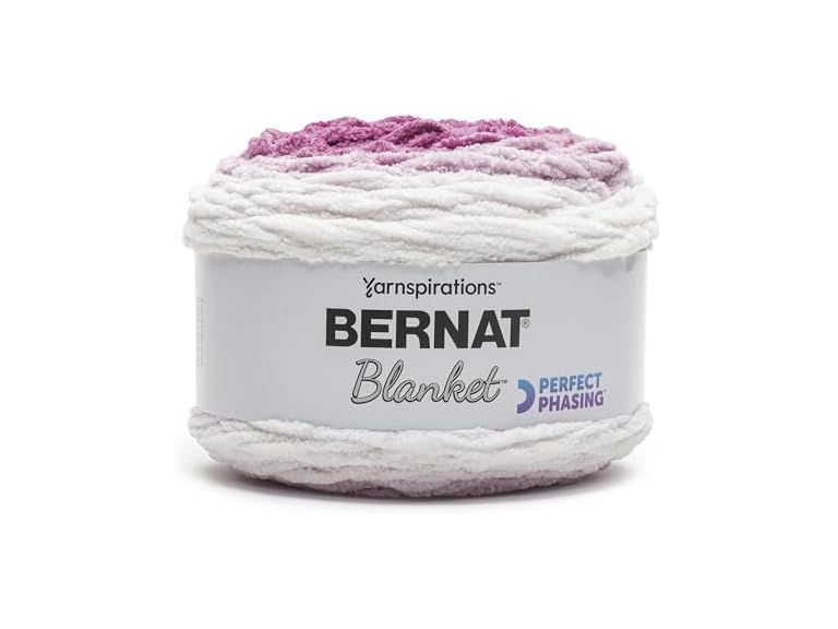 Experience the beauty of color transitions with this enchanting chenille-style Bernat Blanket Perfect Phasing yarn. Each skein is meticulously constructed to ensure a seamless transition from one shade to another. You will witness the colors effortlessly blend and flow, fade from dark to light, creating a harmonious fusion of tones that adds depth and dimension to your projects. Weight Category: 6. Content: 100% Polyester. Put up: 10.58oz/300g, 220yd/201m. Gauge: 8stX13r=4in/10cm on size US10/8mm knitting needles. Suggested crochet hook size: L11/8mm. Dyelotted: we try but are not always able to match dyelots. Available in a variety of colors. Each sold separately. Machine Wash Cold, Delicate/Gentle Cycle, Do Not Bleach, Tumble Dry Low Heat, Delicate/Gentle Cycle, Do Not Iron, Do Not Dry Clean. Imported.