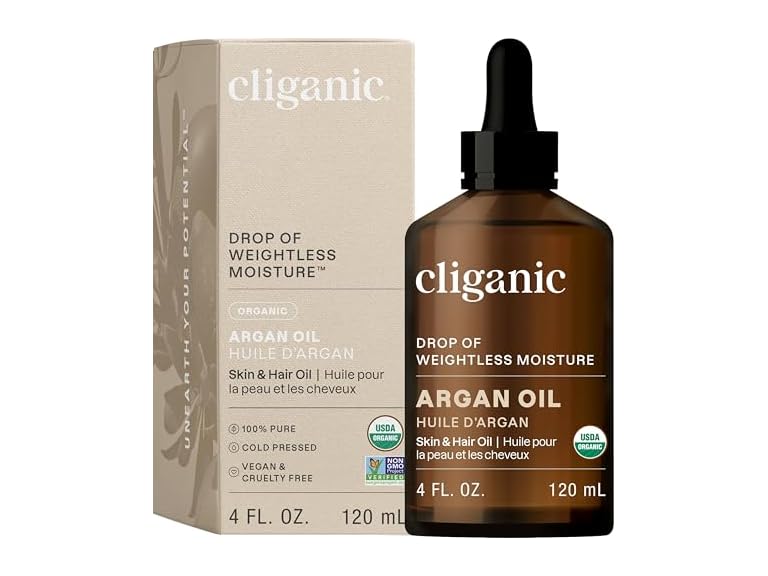 (1) Cliganic Organic Argan Oil, 100% Pure | for Hair, Face & Skin | Natural Cold Pressed Carrier Oil, Imported from Morocco