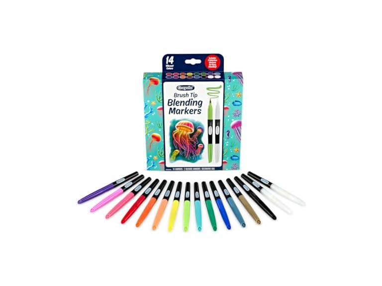 - CRAYOLA BLENDABLE MARKERS: Includes 14 vibrant markers and 2 colorless blenders for creating textures and spot effect
