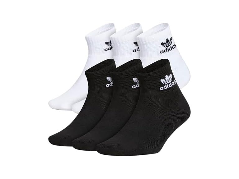 - (1) adidas Originals Kids-Boy's/Girl's Trefoil Cushioned Quarter Socks (6-Pair)