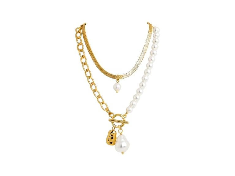 - (1) ADORANCE Gold Plated Pearl Necklace for Women – Made from Classic White Freshwater Pearls, Double Strand Design, Hypoallergenic, Perfect Jewelry for All Occasions