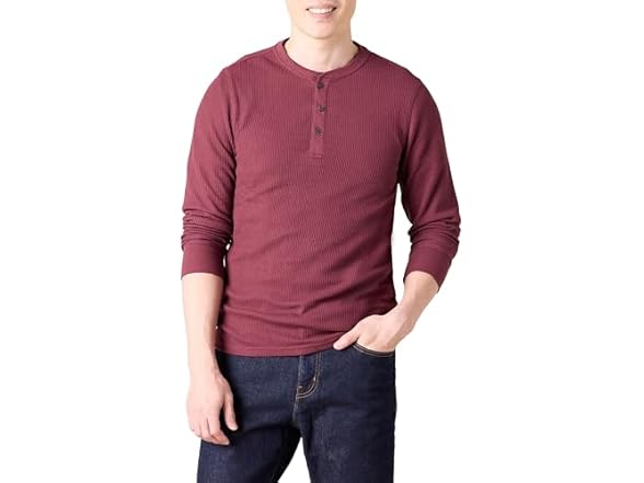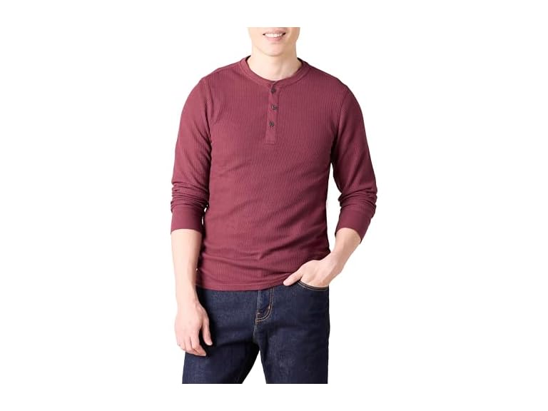 - Amazon Essentials Men's Long Sleeve Waffle Henley Shirt, Slim-Fit