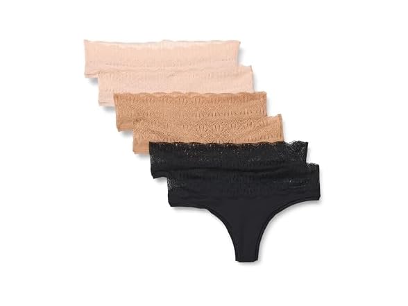 - Amazon Essentials Women's Peached Microfiber with Lace Trim Thong, Pack of 6