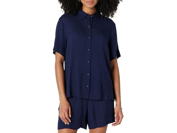 - Amazon Essentials Womens RelaxedFit Fluid Twill ButtonDown Shirt