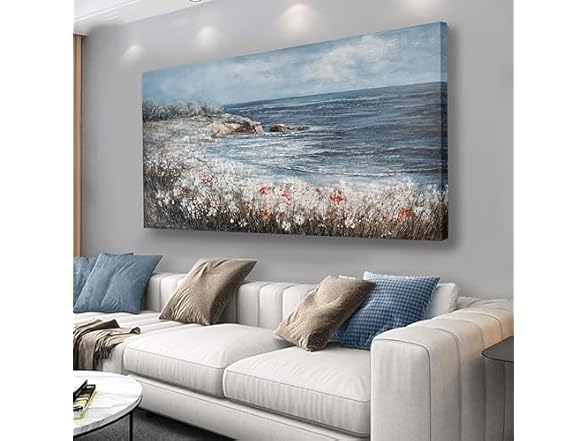 - (1) AERART Seascape Wall Art Ocean Wall Decor Floral Canvas Paintings Framed Artwork Modern Aesthetic Suitable for Living Room Bedroom and Office Home Decor 24"x48"