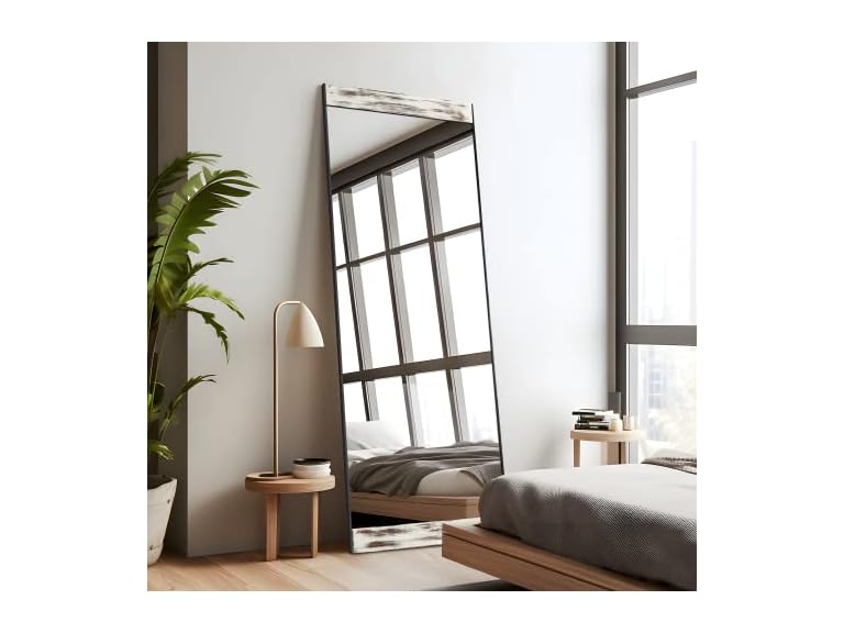 Honored to have your visit to NeuType Full Length Mirror Metal Frame with Pine Wood Veneers!IMPORTANT TIPS:1. FULL REFUND or FREE REPLACEMENT for mirrors Damaged on Arrival, no return needed, only need to send us some pictures through Amazon Message to show the damaged mirror(s), the outer box(es) and the shipping label(s).2. Some deviation in size may exist due to manually measured.Key Features:1. Full length, large enough, 65 inches x 22 inches.2. Multiple uses in various occasions, perfect as full length mirror, dressing mirror in bedroom, free standing mirror in living room, wall-mounted mirror or corridor mirror.3. The mirror can be put: free standing, wall-mounted, or simply lean against the wall.4. Black metal thin frame, pine wood veneers on up and down sides.5. HD glass, SQ grade float glass, burst-proof.6. Copper-free silver mirror, multi-layered.7. Aging tested, moisture proof.8. Quality metal hooks on back, beautiful and firm.9. One-piece bracket, retractable.Specifications:Overall Size: 65"x22"x1.57"Mirror Thickness: 4mmPine Wood Veneer Width: 5cm(1.97")Side Frame Width: 4.5cm(1.77")Back Frame Width: 1.5cm(0.59")Package Size: 67"x26"x4.72"Package Contents:NeuType Full Length Mirror x 1Screws Kit x 1Metal thin frame with pine wood veneers, exquisite wood texture, sleek modern styling, NeuType Full Length Mirror Floor Length Mirror Bedroom Mirror Wall Mounted Mirror is an eye catching addition to any modern suite, simple, aesthetic styling. It is very large, providing all viewing angles in one. Perfect to be used in bedroom, living room, bathroom, or corridor. Get one for your room!