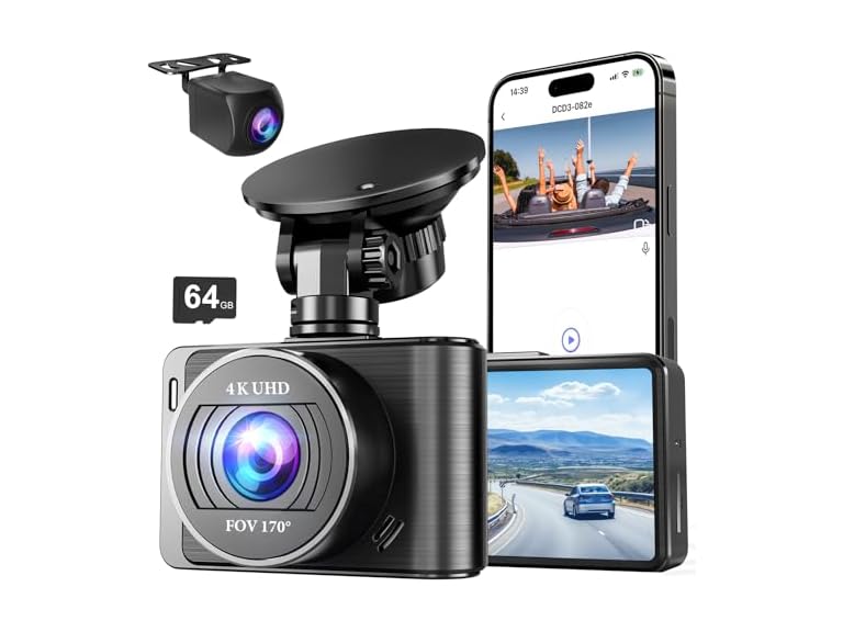 - ➤【WIFI & APP COMPATIBILITY】The car dash cam comes with integrated WiFi and supports an app available for both Android and iOS devices. Through the app, users can live preview, download, and manage videos. Sharing recorded videos on platforms like Facebook, YouTube, and Twitter is straightforward. The dash cam also includes a 64GB SD card, eliminating the need for an additional purchase.