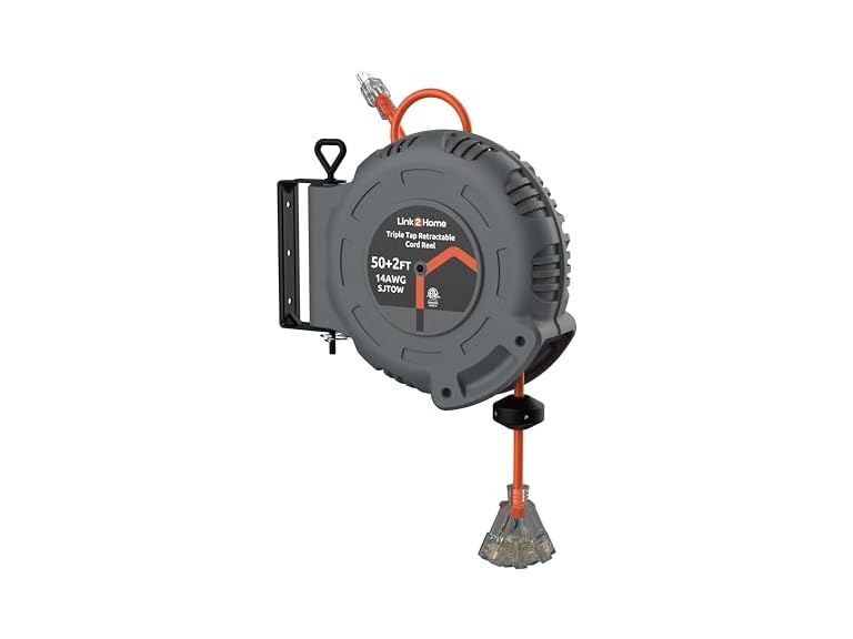 - (1) Link2Home 50 Ft. Retractable Extension Cord Reel with 3 Outlets, Lighted Triple Tap, 14AWG
