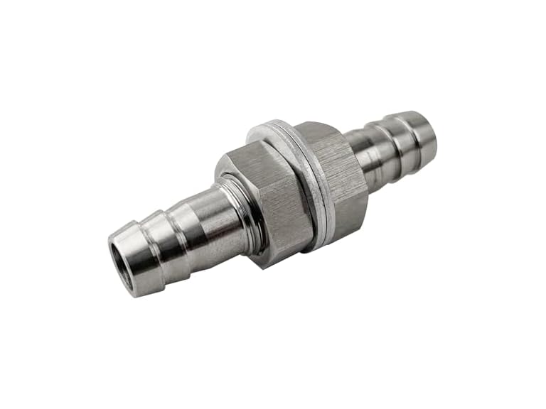 - 3/8" Hose Barb Thru-Bulk Bulkhead Straight Hex Union 304 Stainless Steel Barbed Fitting for Air Water Fuel