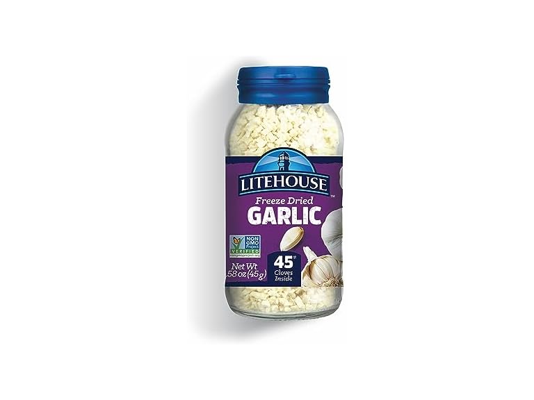 - (1) Litehouse Freeze Dried Garlic - Garlic, Substitute for Fresh Garlic & Minced Garlic, Jar Equal to 45 Garlic Cloves, Garlic Flakes, Garlic Freeze Dried, Non-GMO, Gluten-Free - 1.58 Ounce