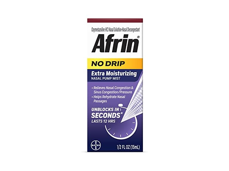 - Afrin No Drip Extra Moisturizing is a nasal pump mist designed to relieve nasal congestion for up to 12 hours