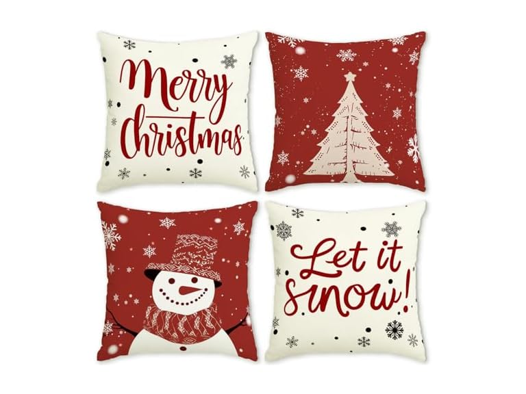 - (1) AgQrDkrc Christmas Pillow Covers 18x18 inch Christmas Decorations Snowman Xmas Tree Winter Holiday Decoration for Sofa Couch Set of 4