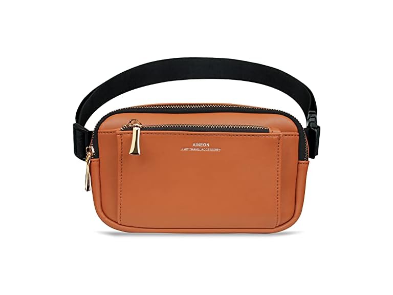 - LARGE CAPACITY: AINEON black fanny packs for women can store your essentials, keep them neat and organized.The leather waist pack belt bag for women has one main zipper pocket to store cell phone, wallet, keys, passport,credit card and others;the front zipper pocket for small things like earphones, keys, lipstick;the internal zipper pouch for cash and other valuables;Another internal one pocket for your Id card, credit card organizer etc.