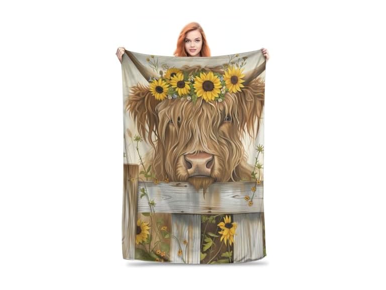 - (1) ainori for Boho Highland Cow with Sunflower Crown Plush Flannel Throw Blanket - Ultra Soft, Comfy & Warm - Lightweight, Cozy, Anti-Pilling - Ideal for Couch, Bedroom, Living Room Decor 50inx60in