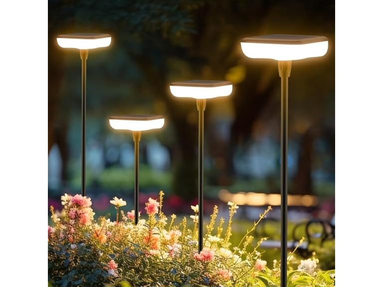 - Dusk to Dawn & Auto On/Off: Ainostone garden lights outdoor waterproof is built-in sensitive light sensors, automatically turn on at night, turn off at dawn and recharge during the day, which will save the battery life when it is needed most; The underside of the solar garden lights is provided with frosted glass-plastic as a diffuser, which distributes the light nicely and make garden comes to life! Beautiful decor for outdoor, garden, flower bed, plants, path, yard, walkway, patio etc.