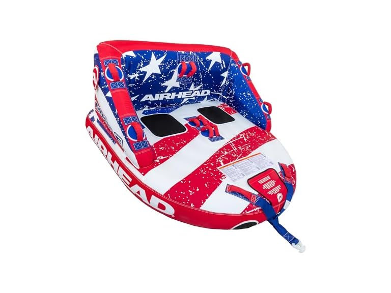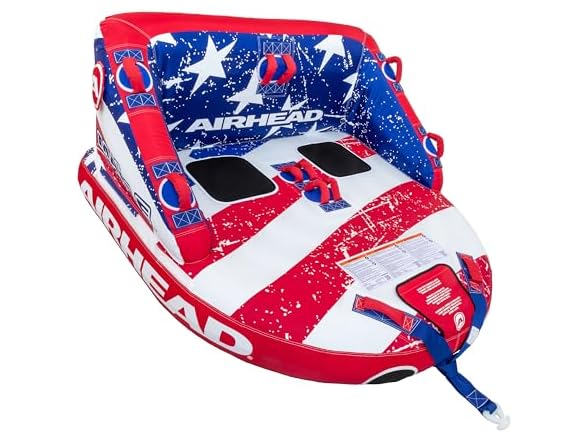 - (1) Airhead Big Mable, 1-2 Rider - Inflatable Towable Tube for Boating and Water Sports, Heavy Duty Full Nylon Cover & Zipper with EVA Foam Padding, Easy Inflating & Deflating - USA Stars & Stripes