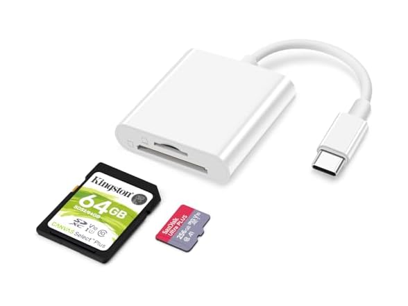 - 【High-speed Data Transfer, Designed for iPhone 15 Series】When this 2-in-1 card reader is connected to your USB-C device, its data transfer speed can reach up to 480Mbps, and large file transfers are also in the blink of an eye. Our card reader is designed for iPhone 15 Plus/Pro/15 Pro Max.