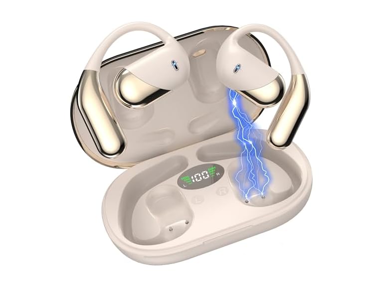 - Open-Ear Comfort,Durability : Crafted as open ear earbuds, these wireless earbuds weigh just 8g per earbud (lightweight PC material) with IPX68 waterproofing. Ergonomic silicone ear hooks ensure a secure, stable fit—perfect for sports, workouts, and daily use. These open ear earbuds let you enjoy audio while staying aware of your surroundings, combining the best of translation earbuds with all-day comfort.