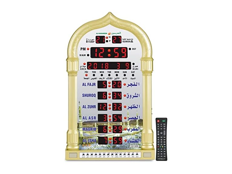 - (1) AL-HARAMEEN ZaNkAlOnY/ALHARAMEENâ„¢OriginalPrayer azan(Gold) Clockha-4008 for USA Office,Home and Mosque