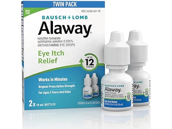 - Alaway Eye Itch Relief: Fast-acting antihistamine eye drops help relieve itchy eyes from pollen, ragweed, grass, pet hair, and dander. These allergy eye drops with ketotifen provide up to 12 hours of allergy relief.