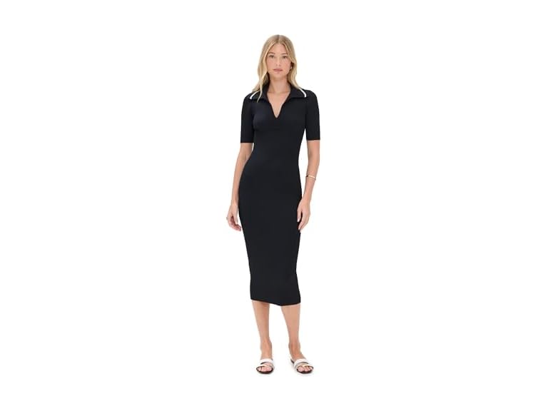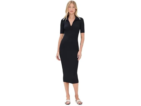 - This ribbed-knit midi dress is crafted in a deep midnight hue and features a contrast collar and placket.