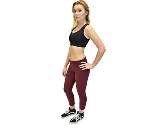- (1) ALIGNMED Mid-Calf Capri Fitness Pants - Sexy Stylish Design, Premium Quality Leggings for Yoga, Running, Gym and Cross Fit (Red Wine, X-Small)