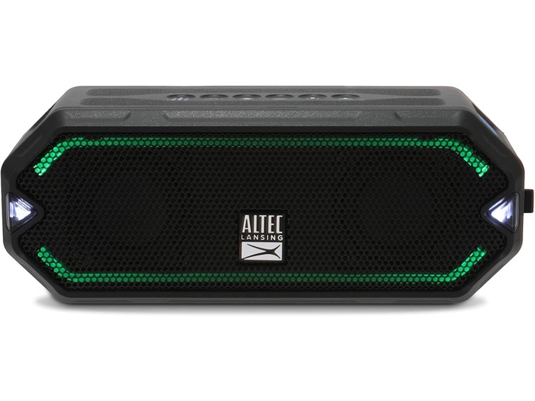- (1) Altec Lansing - HydraJolt Wireless Bluetooth Speaker, Waterproof Portable Speakers with Built in Phone Charger and Lights, Everything Proof Outdoor, Shockproof, Snowproof, 16 Hours Playtime