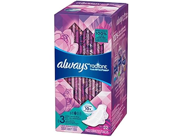 - (1) Always Radiant Extra Heavy Pads Size 3 Light Clean Scent w/Wings - 22ct