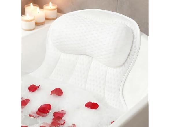 - Indulge in a Spa-Grade Bathing Experience: Designed with ergonomics, this bathtub pillow provides comprehensive and targeted support for your head, neck, shoulders, and back, effectively releasing the day's fatigue. Now, immerse yourself completely in a personalized relaxation moment: play soothing music, light a scented candle, and savor a glass of wine... Feel your body gently cradled as exhaustion dissipates with the water. This is more than just a bath—it's a home spa experience that brings deep tranquility to both body and mind, making every bath a luxurious relaxation ritual. With this luxury bathtub pillow, life has never felt so wonderful and comfortable.