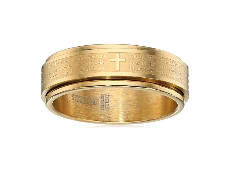 - Stylish Religious Yellow 18K Gold Plated Hail Mary Prayer Ring. Available in Steel, Yellow 18K Gold plated, and Rose 18K Gold plated finish.