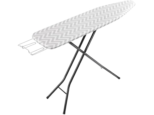 - Amazon Basics Height Adjustable Full-Size Foldable Ironing Board, 4-Leg Fold-Up, Chevron Removable Cover, 60" x 14" x 38"