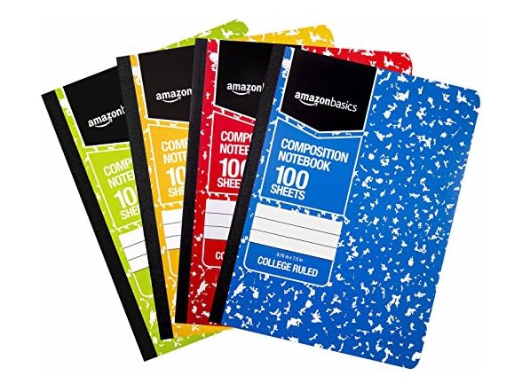 - (1) Amazon Basics College Ruled Composition Notebook, 100 Sheet, Assorted Marble Colors, 4-Pack