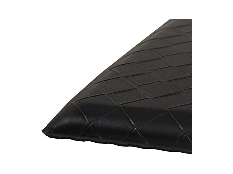 - Includes a black rectangular floor mat made of textured foam for cushioning comfort; stain and abrasion resistant