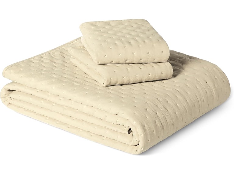 - (1) Amazon Basics Brushed Microfiber Quilt Set, Extra Soft with Natural Texture, 3-Piece