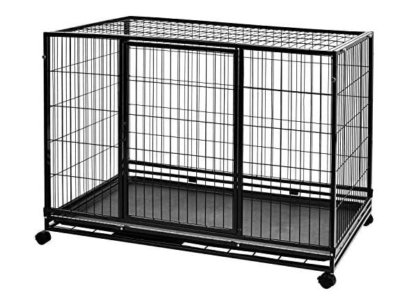 - 48-inch heavy-duty stackable pet kennel with durable pull-out tray for easy cleaning