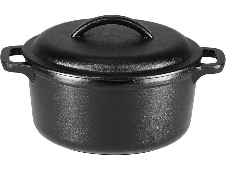 - (1) Amazon Basics Round Pre-Seasoned Cast Iron Mini Dutch Oven Pot with Lid and Dual Handles, 2-Quart, Black