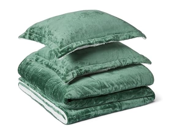 - (1) Amazon Basics Reversible Sherpa Comforter Set with Pillow Sham, Green, King