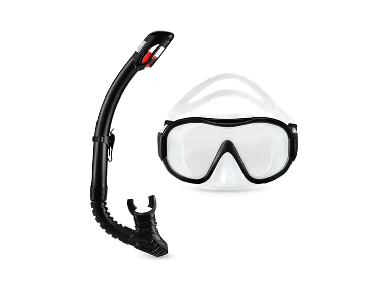 - (1) Amazon Basics Snorkel mask with Carry Bag, Snorkeling Gear for Adults