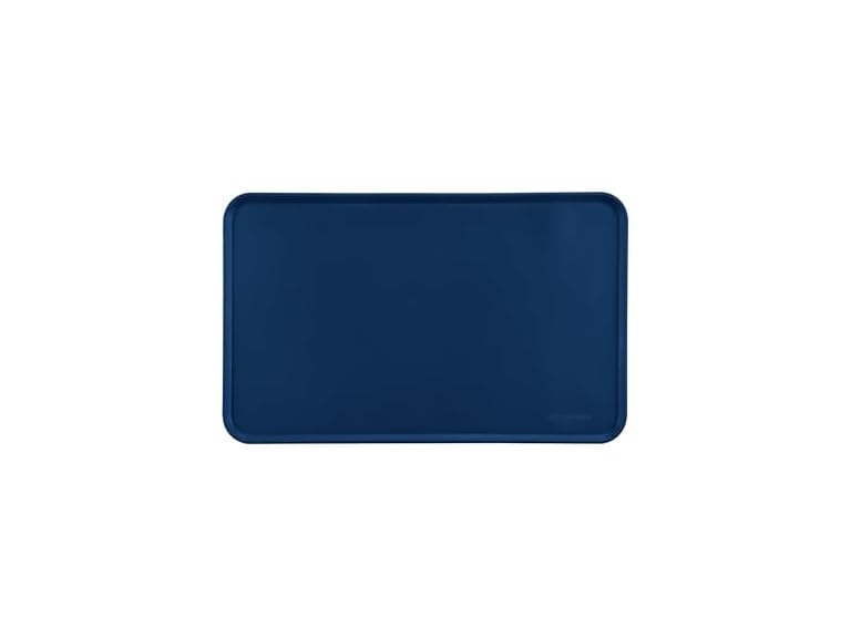 - (1) Amazon Basics Waterproof Non-Slip Silicone Pet Feeding Mat with Raised Edges, Prevents Spills, Easy to Clean, Protects Floors for Cat & Dog Food and Water Bowls, 18.5 x 11.5 Inches, Blue