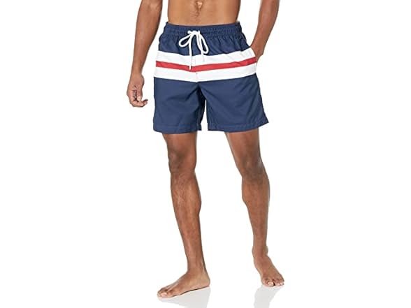 - Amazon Essentials Men's 7 Inch Swim Trunks with Mesh Lining Pockets Drawstring Closure